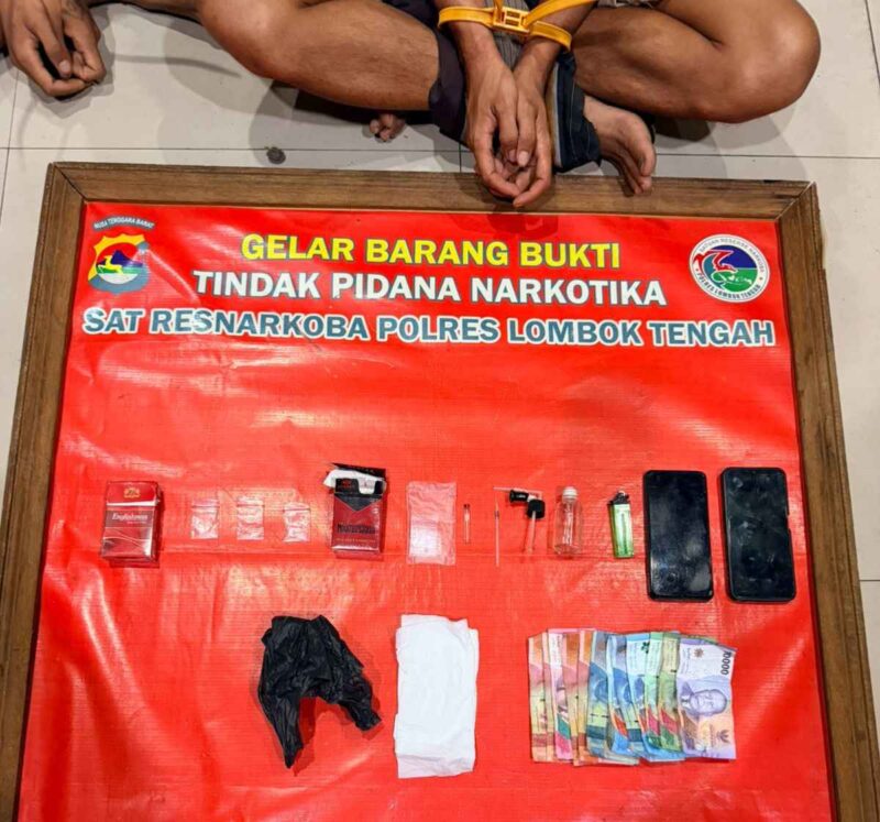 Selanjutnya, di lokasi ketiga yang juga berada di Praya Tengah, tim mengamankan dua terduga lainnya, yakni AR yang diketahui merupakan residivis, serta KA. Dari keduanya, polisi menyita tiga paket sabu dengan berat bruto 2,09 gram, alat hisap, plastik klip kosong yang diduga untuk mengemas barang, serta uang tunai sebesar Rp750.000 yang diduga hasil transaksi.