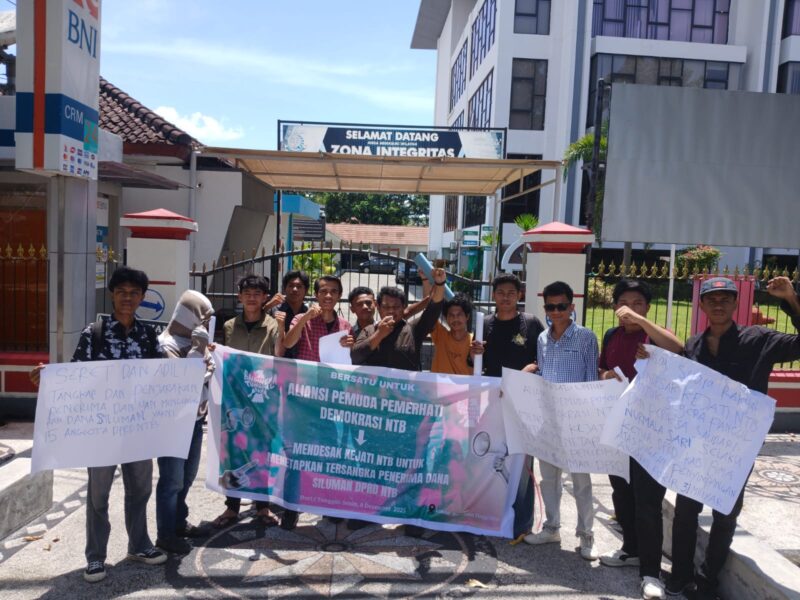 Koran Mandalika, Mataram – Aliansi Pemuda Pemerhati Demokrasi (APPD) Nusa Tenggara Barat (NTB) menggelar aksi unjuk rasa di depan Kantor Kejaksaan Tinggi NTB, menuntut penegakan hukum terhadap 15 anggota DPRD NTB yang diduga terlibat dalam kasus dugaan “dana siluman”.