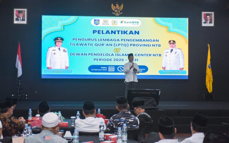 Koran Mandalika, Mataram- Gubernur Nusa Tenggara Barat, Lalu Muhammad Iqbal, melantik Pengurus Lembaga Pengembangan Tilawatil Qur’an (LPTQ) serta Dewan Pengelola Islamic Center Provinsi NTB periode 2026–2031, di Ballrom Bank NTB Syariah, Sabtu 14 Februari 2026.