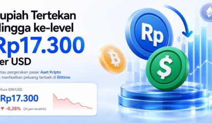 Rupiah Kembali Tertekan Ke-level Terendah Rp17.300 per Dolar AS, Trading Volume $USDT dan $BTC di Bittime Melonjak dalam 24 Jam