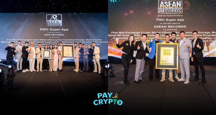 PayWithCrypto (PWC) secara resmi diakui sebagai dompet pembayaran kripto non-custodial pertama yang tercatat oleh ASEAN Records dan Asia Records. Pengakuan ini menandai tonggak penting dalam perkembangan infrastruktur pembayaran digital di kawasan ASEAN dan Asia.