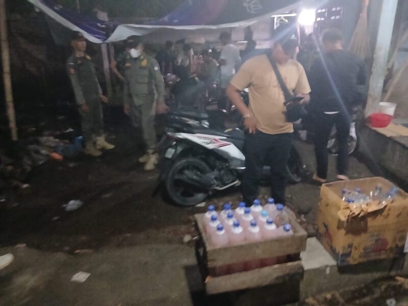 Dari hasil penggerebakan, ditemukan dua dus botol tuak. Tidak tinggal diam, minuman memabukkan tersebut langsung disita Pol PP.